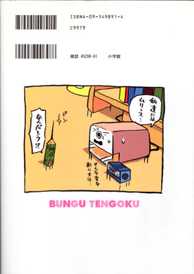 そんな辛い仕打ちを受けている文具たちが持ち主のいない時間に何を考えて、何をしているかを考えてみると、それは身近なテーマで、変な格好になった文具たちの必死な生き残りをかけた展開が涙ぐましいながらも楽しい。「おもちゃのチャチャチャ」よろしく本当にこんな風に文具たちが遊んでいたら楽しいが、これは漫画の世界。これを読んで自虐的ネタに笑いつつ、在りし日の小学生だった自分を思い出しつつ、今日も子供に「文具を大事にしなさいよ!」と叱咤し続けるそんな漫画である。