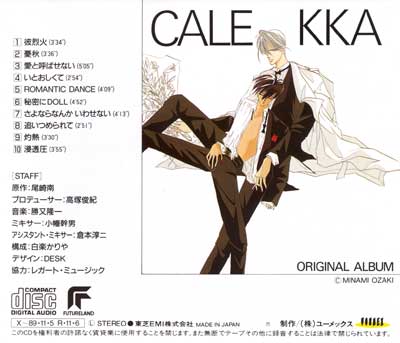 10曲中7曲が歌入りの楽曲となっていて、(2)「憂秋」と(10)「浸透圧」はインストゥルメンタル。(4)「いとおしくて」は、インストゥルメンタルが流れる中、鈴置洋孝さんと飛田展男さんによるミニドラマが収録されている。歌入りの楽曲は、ボーカルが男性あり女性ありと複数の人が歌っているが、編曲が一貫して勝又隆一氏によるものなので、アルバム全体の統一感があり思ったよりも聞きやすい仕上がり。サウンドは、'80年代の特色である打ち込みサウンドがメインとなっていて、当時の都会的な雰囲気のする音作りとなっている。(1)「彼烈火」は、サビの「行かないで 彼烈火 俺の背中の爪あとが 許さない 彼烈火 まなざしにおびえて」のメロディーにインパクトがあり、耳に残る。ちなみに「彼烈火」は、「かれっか」と読む。