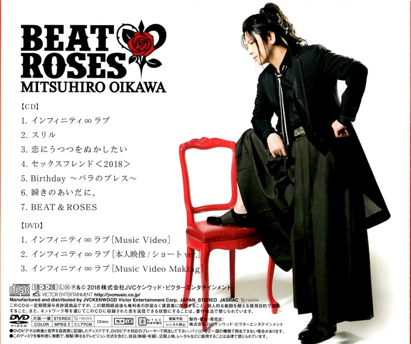 Music Videoは、カラオケで男子が好きな女子の目の前で「インフィニティ ∞ ラブ」を歌い、及川さんがカラオケ店員となって出演。カラオケの歌詞の出る画面には、この曲のためのバンド、インフィニティーズを率いて歌う及川さんの映像が流れ、これがまた歌って踊って実に楽しそう。バンドのメンバーは格好いいのに、及川さんだけ愛くるしいのはどういうことなんだろうか。赤いジャケットの下に着ている黒いシャツの長いプリーツをクルクルと高速ターンでヒラヒラさせるのはヤメロ!ある意味悩殺プレイ。まるでスカートのようなヒラヒラのプリーツがこんなに似合う全力中年は他にいないだろう。