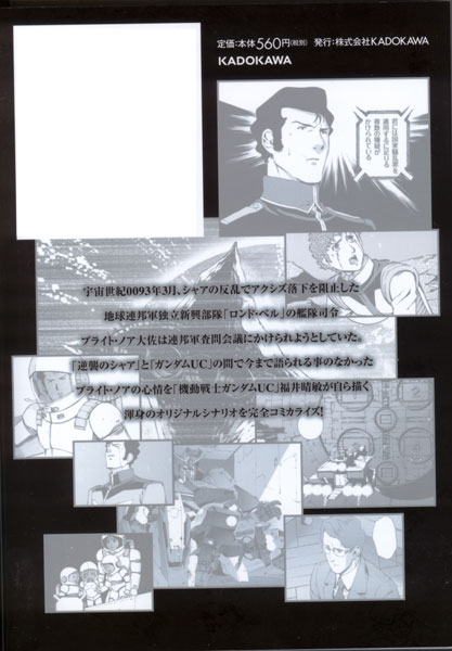 各作品の主役ではないものの、ガンダムを乗せた艦の艦長としガンダムのパイロットを見届けてきたブライトは、シリーズを一つの線に繋げる重要な存在。現場と上層部との中間に立ち、時に殴られ、時に戦局を左右する交渉の場に臨み、いつだって生き延びるために懸命な努力をしてきた苦労人ブライトの内なる思いをたっぷりと読むことのできる内容となっている。