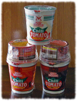2010年夏、「ガンプラ」発売30周年を記念した商品として、日清「カップヌードル」からシャア専用モビルスーツのミニガンプラ付きが発売。シャアの「赤い」と「3倍速い」にちなみ、通常の「チリトマトヌードル」には「シャア専用ザク」が、「辛さ3倍チリトマトヌードル」には「シャア専用ズゴッグ」が、そして「赤いチーズ入りチリトマトヌードル」には「シャア専用ゲルググ」のミニガンプラが付いた。