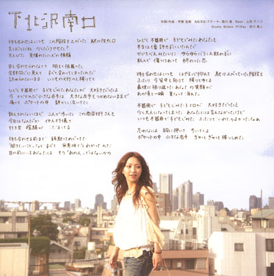 2005年〜インディーズで活動していた甲斐名都さんのメジャーデビュー曲。下北沢は、彼女のホームグラウンドであり、最も思い入れのある場所ということで、敢えて新曲ではなく、歌入れをし直してのメジャーデビュー。この曲を大切に思っている彼女の姿勢が窺える。